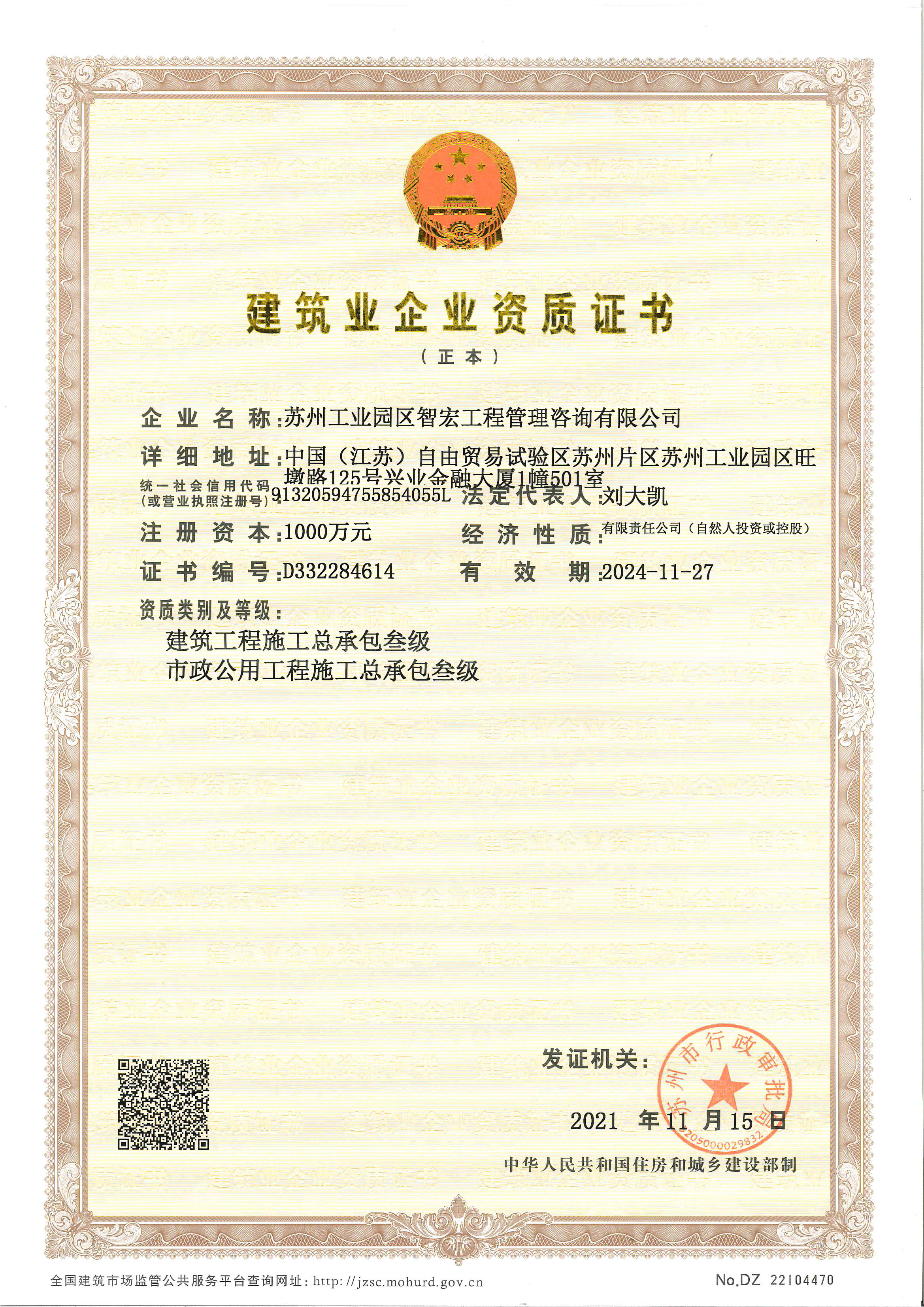 蘇州工業(yè)園區(qū)智宏工程管理咨詢有限公司成立于2003年11月,是一家具有獨立法人資格的專業(yè)建設(shè)工程管理及咨詢企業(yè),注冊于蘇州工業(yè)園區(qū)。注冊資金RMB1000萬元。公司具有房屋建筑甲級、市政工程甲級、機(jī)電安裝甲級、化工石油乙級、電力工程乙級、人防乙級監(jiān)理資質(zhì)及造價咨詢和工程招標(biāo)代理資質(zhì),并擁有建筑工程施工總承包、市政公用工程施工總承包叁級資質(zhì)。